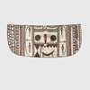 carved wood and pigment, the central plane spread in the form of wings, incised and painted with various geometric, anthropomorphic and zoomorphic motifs, in the middle two concentric circles denoting the eyes, a central beak and circular mouth, at the reverse checker board pattern and face mask