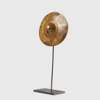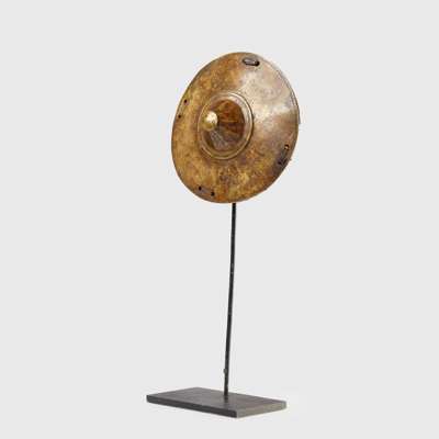 brass with wickerwork backing and leather handle, raised on a bespoke mount