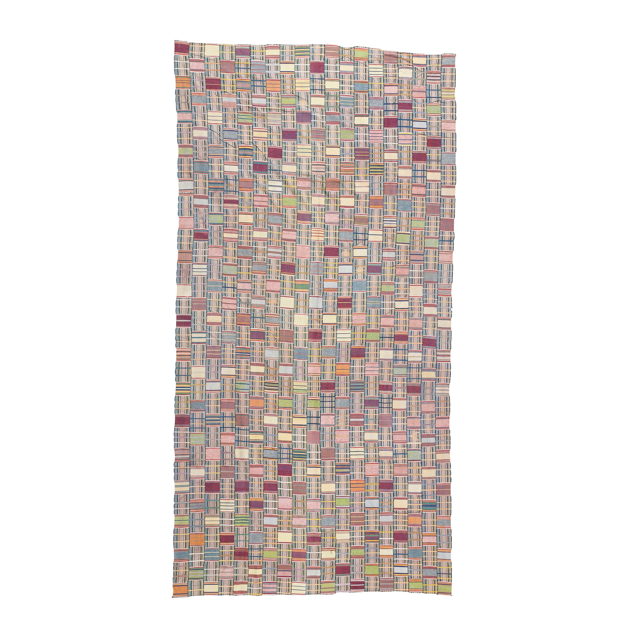 hand spun cotton, with alternating blocks and narrow weft stripes in a multitude of colours