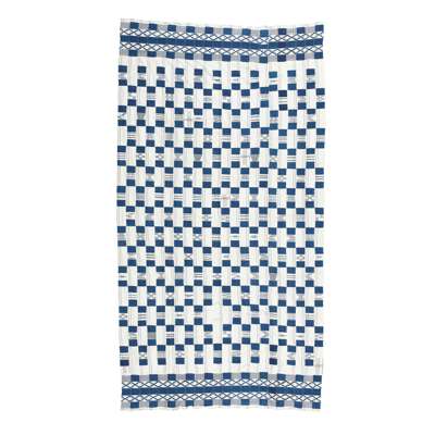 hand and machine spun cotton, white and blue, with embroidered weft-float motifs of geometric forms