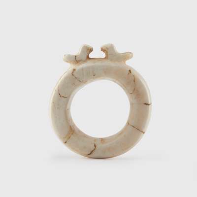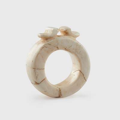 carved tridacna shell, topped by a pair of birds