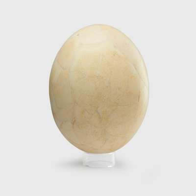 The Elephant Bird, Aepyornis maximus, produced the largest egg of any animal that has ever lived, including the dinosaurs. Standing around ten feet tall and weighing half a tonne, the volume of an average Elephant Bird egg is equivalent to 160 modern chicken eggs. Native to Madagascar, the animal lived to well within human memory, only becoming extinct around 1200 AD. Indeed, during his travels to the east Marco Polo wrote of hearing tales from sailors about huge birds, these accounts are likely to describe the Elephant Bird.