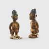 carved wood, cowrie shell and beads, a male and female figure, standing on integral bases, with incised conical coiffures and beads around the ankles and arms (2)