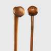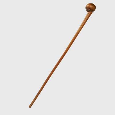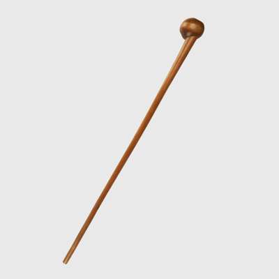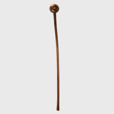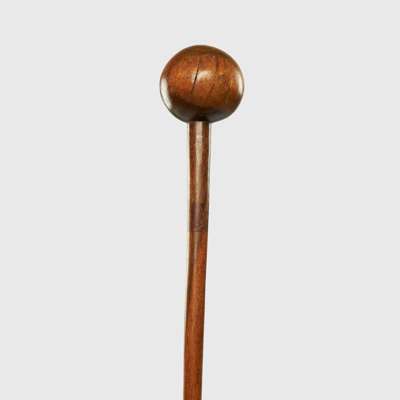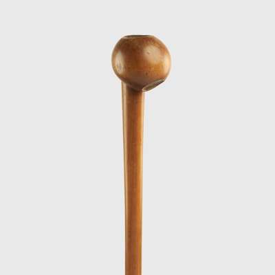 carved wood, the snuffkerrie with long shaft and offset ballhead with two opposing planes; the knobkerrie terminating in a bulbous head with caramel patina (2)