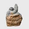 carved springstone, the lady with full features shown with her left hand raised in greeting, the uncarved stone used to form the folds of her voluminous dress, signed "Colleen"