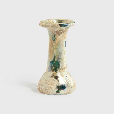 Roman cast glass “cotton reel” ungentarium 1st century AD with mirror silver irridescant