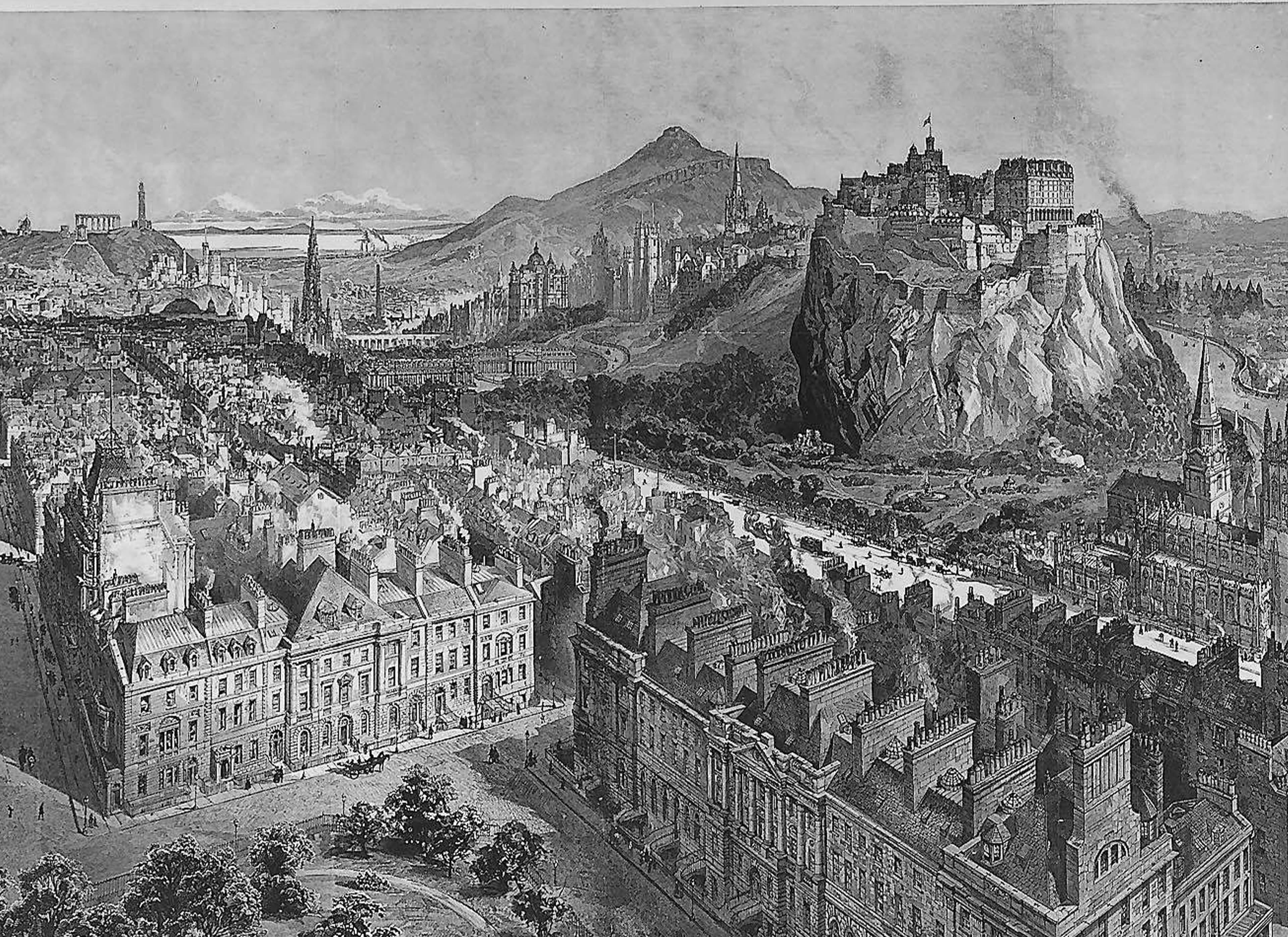 A PANORAMIC VIEW OF EDINBURGH AND THE CASTLE FROM CHARLOTTE SQUARE