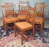 the curved panelled top rail on four reeded vertical supports, the drop in seat on square tapering legs and H-stretcher (7) one carver