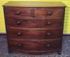 of two short over three long graduated drawers, a shaped apron below on reduced splay bracket feet