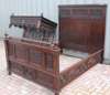 with projecting galleried canopy, with leaf carved finials to the angles, above floral and leaf carved frieze with pierced gothic apron, the back above carved panels above panelled side boards and panelled foot board
