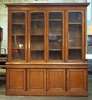 the moulded cornice above a plain fringe, four glazed doors below enclosing adjustable shelves, the lower section with four panelled doors, on a plinth