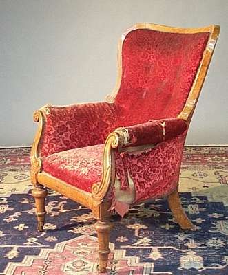 A walnut framed Victorian open armchair