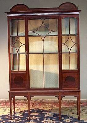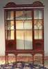 with ebony and boxwood stringing, the raised back above glazed door and front and side panels enclosing shelves with lower inlaid panels, on square tapering legs with spade feet