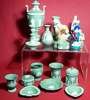 to include an urn and cover with Classical Greek figures, two candlesticks, a pair of dwarf candlesticks, pewter bowl and cover, a lidded circular jar and four continental figures, a lot
