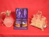 Birmingham 1929, an electroplated mounted glass claret jug, of globular form, the mount with floral capped handle and spout, ivory turned finial and a electroplated cruet stand, of rectangular form