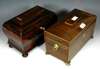 with brass fittings and fitted interior, 30cm wide; also a mahogany bombe shaped tea caddy, with fitted interior, 28cm wide (2)