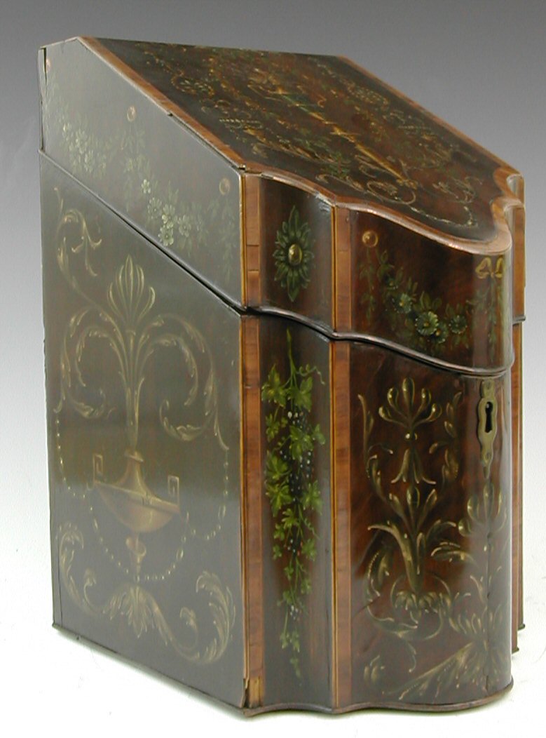 A George III mahogany and later decorated knife box,
