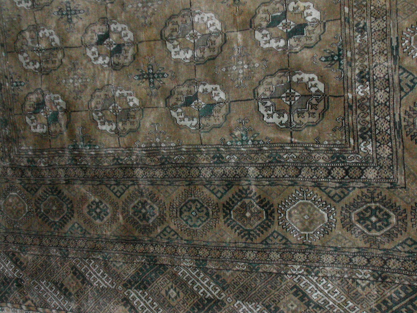 the camel field with four columns of eleven guls, within satrburst border, 284 x 182cm; and a Turkoman engsi, the camel field with central cruciform motif, 186 x 125cm (2)