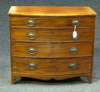the boxwood strung crossbanded top above four long graduated drawers, with serpentine apron on shaped bracket feet