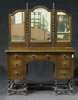 comprising a dressing table with three panel hinged mirror, a two drawer side table, two drawer writing table with stationery compartments and a cheval mirror, all with spirally turned legs (4)