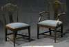 bearing label of Muirhead Moffat, including two carvers, each with arched back and pierced splat, drop in seat, H-stretchers, square tapering legs (8)