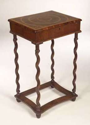 with hinged lid, on later corresponding stand with spirally turned legs, carved stretchers and bun feet