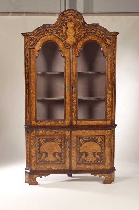 An 18th century Dutch marquetry corner cabinet,