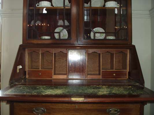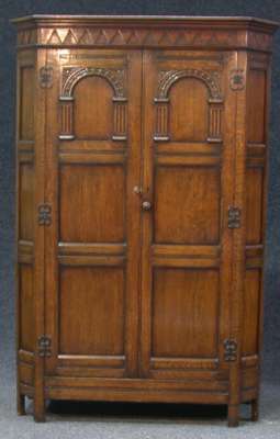 An Edwardian mahogany and satinwood banded break front wardrobe,