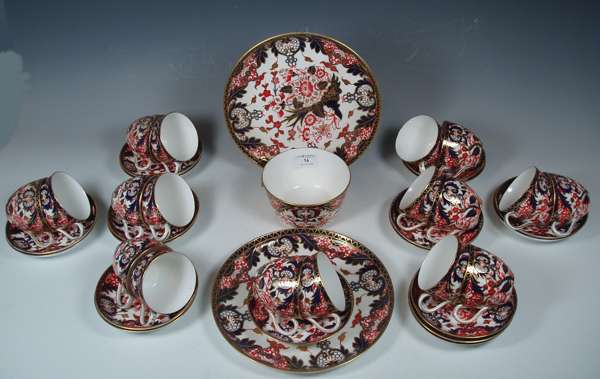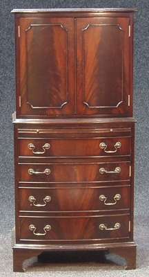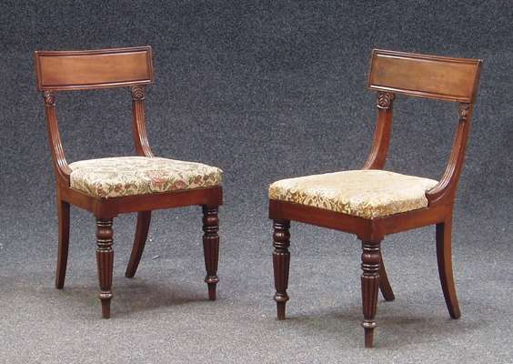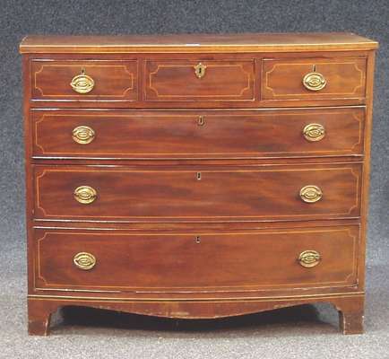 A Reproduction George III style flame mahogany and line inlaid dining suite,