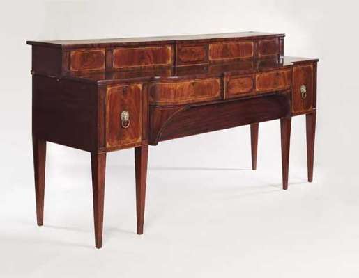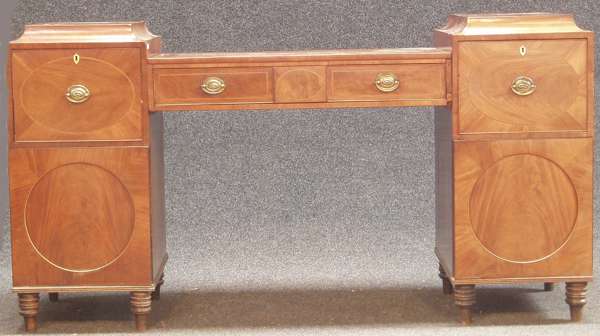 A William IV mahogany, boxwood and ebony strung pedestal sideboard,