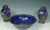 including a bowl decorated with a sponge blue ground transfer printed and over decorated with a flowering jardiniere and floriate motifs, 30cm diameter; a pair of hexagonal vase and covers, bearing 'Rock and Pheasant' pattern; a smaller vase; and a Rubens Ware bowl