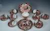 transfer printed and overpainted in the Imari palette, comprising eighteen tea cups; eighteen saucers; two cake plates; and a sugar bowl