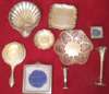 to include an Edwardian square photograph frame, Birmingham 1905, another smaller square photograph frame, same date, a shaped square salver, by Elkington & Co., Birmingham 1913, an Irish silver dish inset to the centre with a commemorative medal, a pierced hexagonal dish, a shell form dish and other pieces, various dates and makers (9)