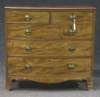 of two short over three graduated long drawers, shaped apron to shaped bracket feet