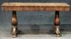 with a short drawer to each end and pedestal supports to scroll plinth base on bun feet
