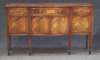 A Reproduction George III style flame mahogany and line inlaid dining suite,