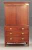 with double panel doors over three long graduated drawers, oval acorn stamped handles