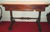 the shaped rectangular top over a single drawer, on carved supports, united by a turned stretcher, on bun feet