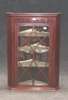 with moulded cornice above astragal glazed hinged door, opening to reveal a series of shelves