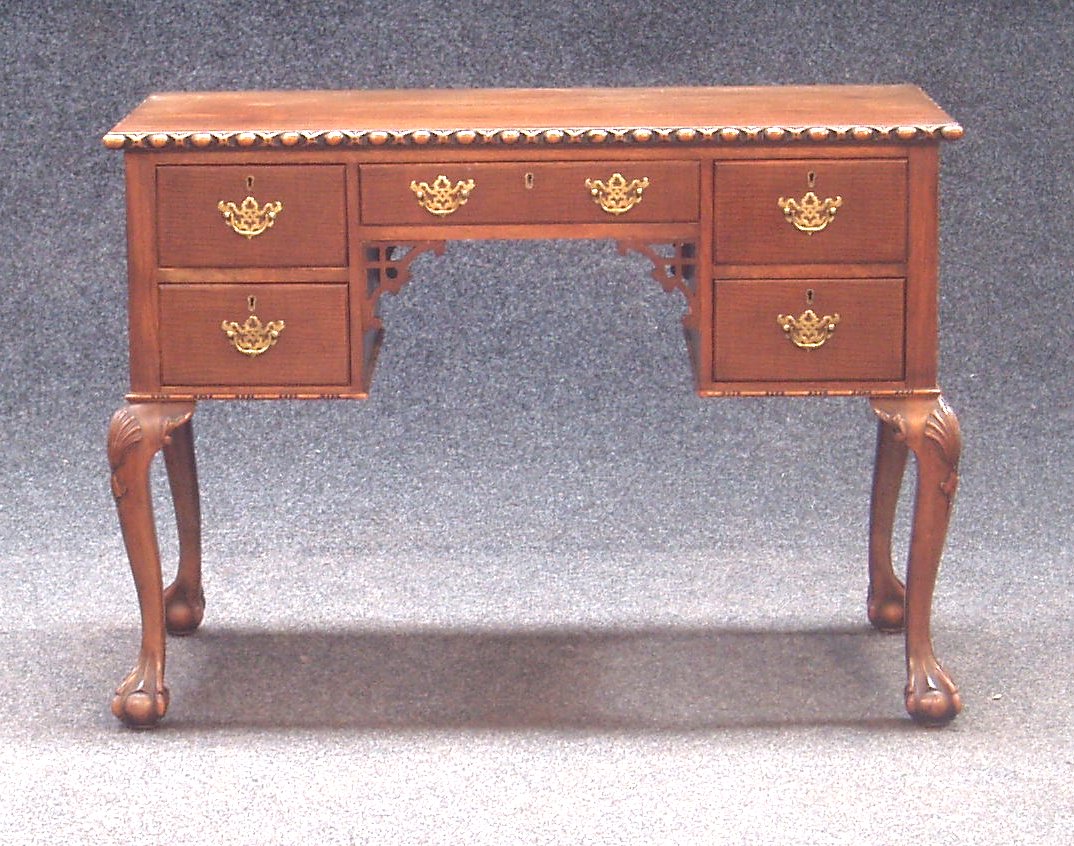 A reproduction kneehole desk,