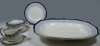decorated with a band of repeat classical motifs reserved against a blue and gilt band, to include a meat plate, 50cm wide; ashets in sizes; a pair of sauce tureens, covers and stands; and plates in three sizes