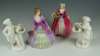 model number HN 1569, 18cm high; another 'Janet' HN1537, 17cm high; a Royal Worcester figure, modelled by F. G. Doughty, 'The Parakeet', shape no. 3087; and a pair of Royal Worcester blanc de chine type figural posy holders, modelled as a young lady and her suitor, each dressed in late 18th century costume and carrying baskets, (one with damages), each approximately 15cm high
