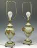 A pair of gilt metal mounted green hardstone table lamps,