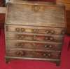 the rectangular fall flap enclosing a fitted interior, over four long graduated drawers, raised on a plinth base with bracket feet