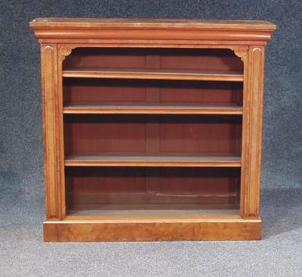 with rectangular plinth top over three open adjustable shelves, flanked by panelled supports on plinth base