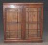 each with moulded cornice over glazed double doors, enclosing a series of shelves, on plinth base (2)