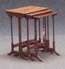 each with rectangular top supported on turned faux bamboo uprights united by a turned stretcher, standing on sleigh feet