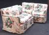 of rectangular form with floral glazed cotton loose covers and down filled cushions, mahogany square tapering legs with castors (2)