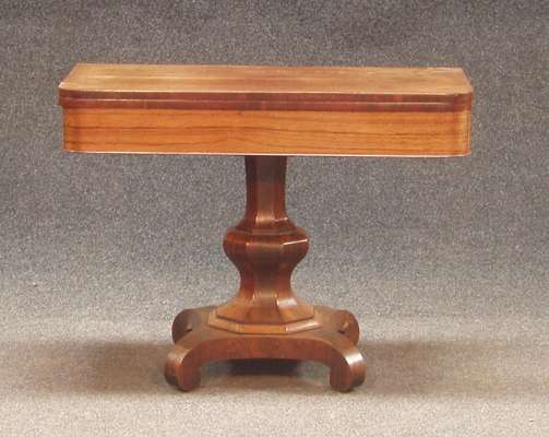 the rounded rectangular hinged top above a plain frieze, on faceted baluster column and quadriform base with downscrolled feet