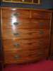 with two short over four graduated long drawers, shaped apron on bracket feet terminating in scrolls